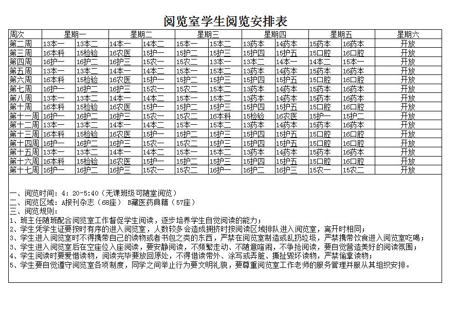 阅览室员工阅览安排表