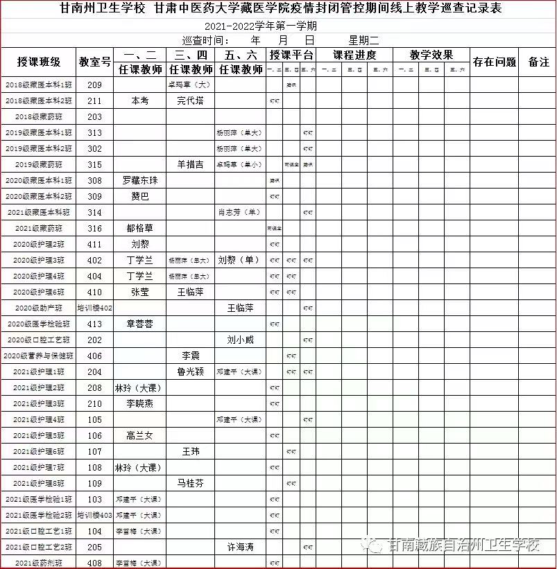 教务科及时根据本学期授课任务表制定了线上教学课程表及巡查记录表,安排专职人员进行日常教学巡查,密切关注老师的线上线下授课情况,了解员工上课动态,及时进行协调处理,以确保教学计划不缩水、教学标准不降低,保质保量完成教学任务。