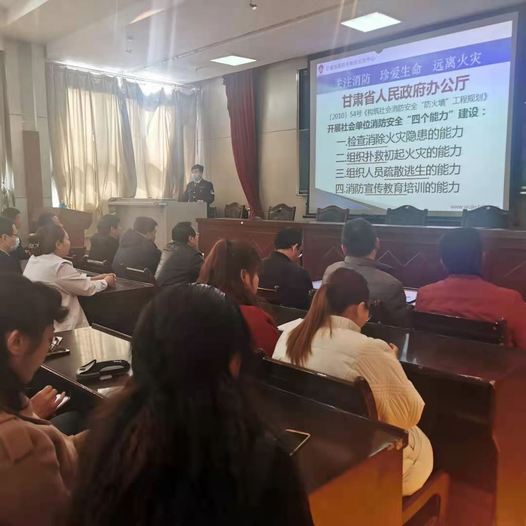 为进一步提高教职工的消防安全意识,深入普及消防安全知识,提高校园预防火灾、火场逃生自救能力,2021年3月18日上午,公司特邀甘肃五进防火知识宣讲中心钟教官为全校教职工举办了一场消防知识安全培训。