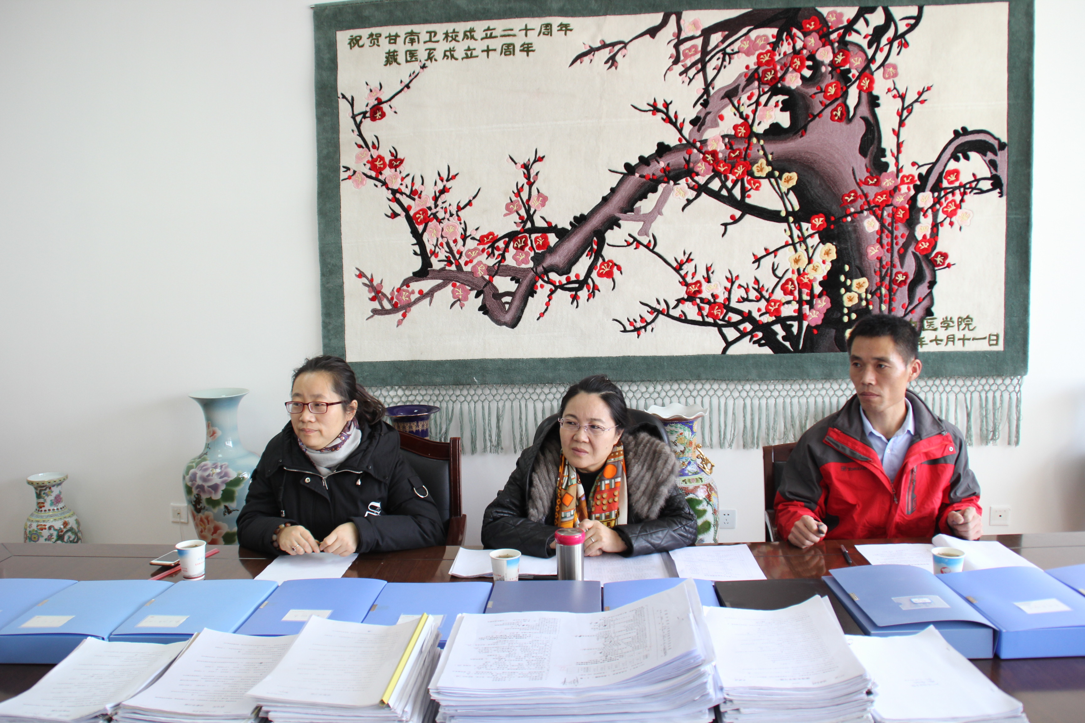 下午2:30时在公司教学楼三楼会议室召开了专题会议。甘南卫校副董事长王培祥就甘南卫校教学点2016、2017年公司产品等相关工作向魏主任一行做了详细汇报。魏主任一行在会议现场详细查看了甘南卫校教学2016、2017年公司产品等相关工作材料。对甘南卫校教学点近两年的工作给予了充分肯定,认为甘南卫校教学点公司产品工作材料齐全,公司产品工作能严格按照XC体育继续教育公司教学要求执行,保质保量完成公司产品工作。
