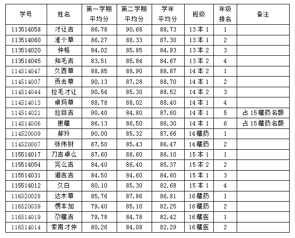 2016-2017学年国家励志奖学金审批名单公示